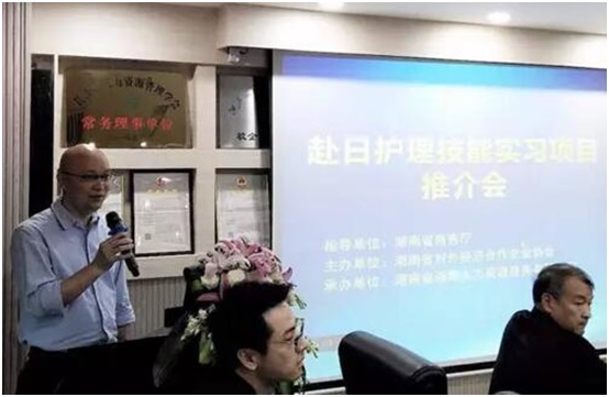 2017年4月25日下午,由湖南省商務(wù)廳指導(dǎo)、湖南省對外經(jīng)濟(jì)合作協(xié)會主辦、湖南省湘輝人力資源服務(wù)有限公司承辦的“赴日護(hù)理技能實(shí)習(xí)項(xiàng)目推介會”在長沙舉行。國家衛(wèi)計(jì)委能力建設(shè)和繼續(xù)教育中心社會合作部主任王永進(jìn)、湖南省商務(wù)廳對外合作處長彭爭、天心區(qū)副區(qū)長許波、日本醫(yī)療看護(hù)合作社理事長栗原幸太郎、湖南發(fā)展集團(tuán)股份有限公司副總裁兼湖南發(fā)展僑亞養(yǎng)老產(chǎn)業(yè)有限公司董事長張建湘等出席了會議。